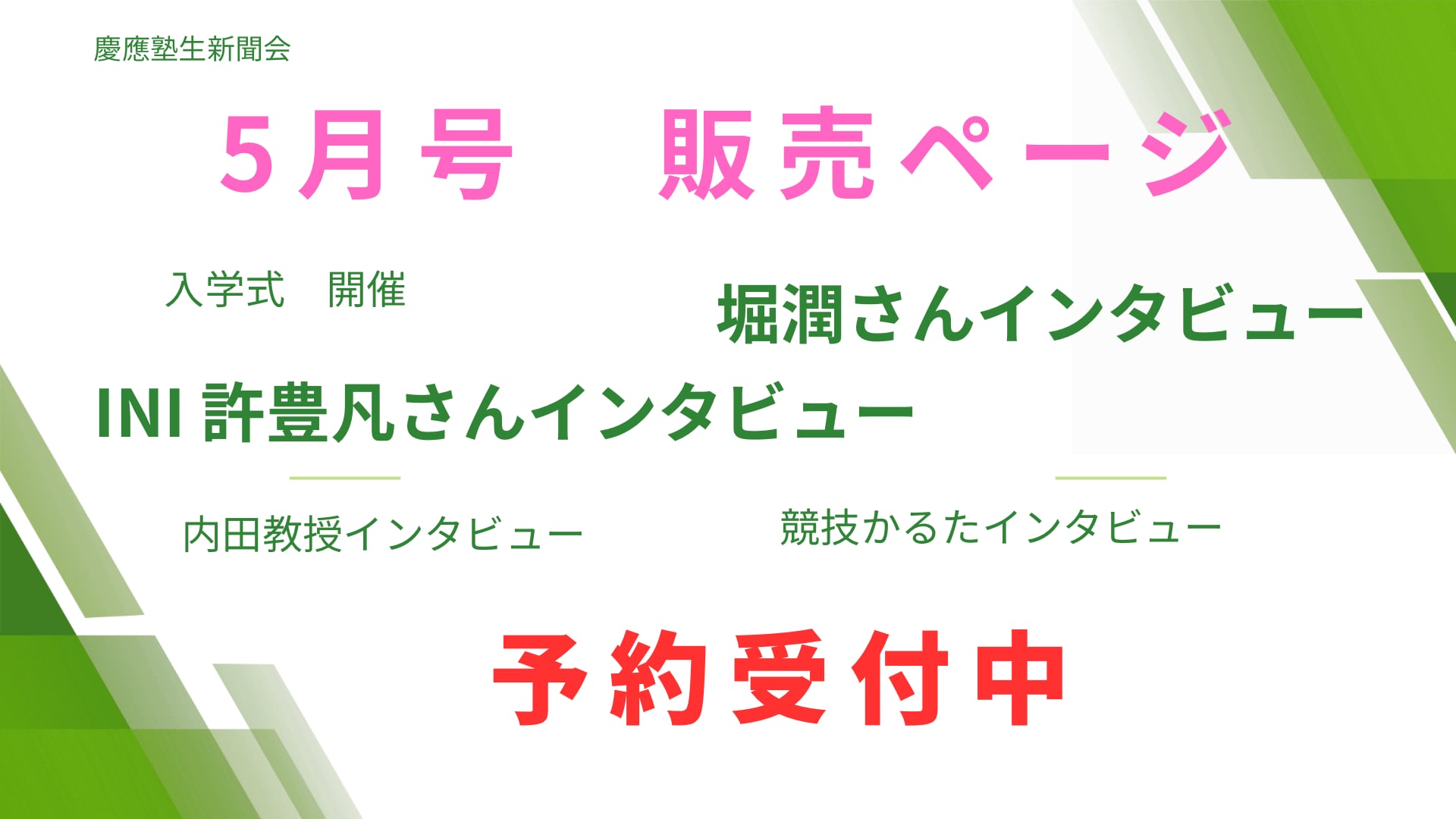 【INI許豊凡様(お写真有)インタビュー掲載!】慶應塾生新聞 2026年5月号